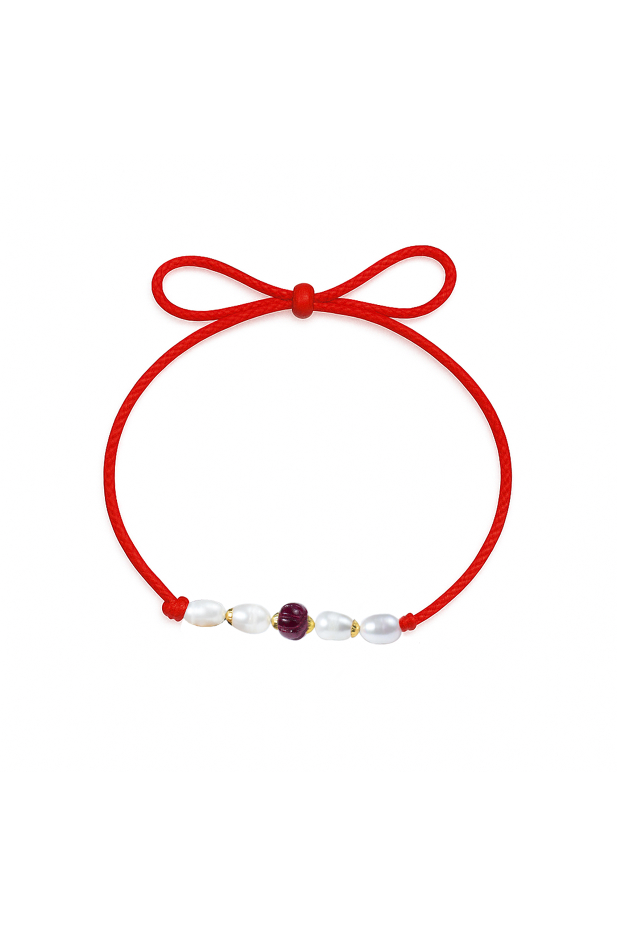 Elegance meets simplicity in this exquisite bracelet featuring a hand-carved Rubellite gemstone complemented by genuine freshwater pearls. The radiant red thread symbolizes protection and positive energy, while the natural pearls bring purity and grace.