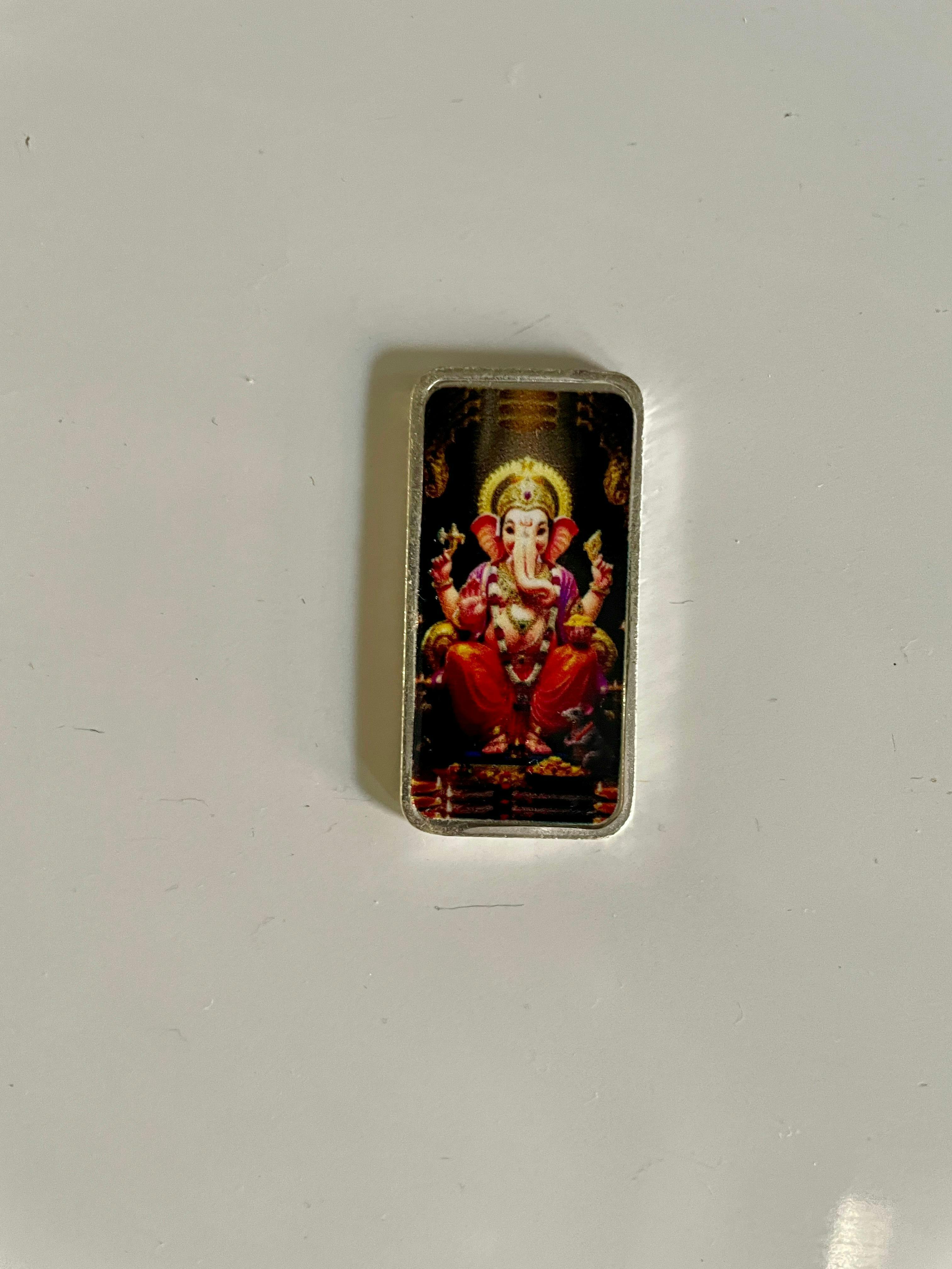 Celebrate spirituality and elegance with this exquisitely crafted 999 pure silver Lord Ganesha coin, adorned with a vivid acrylic painting. Known as the remover of obstacles and the god of wisdom, Lord Ganesha is depicted in divine form seated in a traditional temple backdrop, blessing you with peace and prosperity.