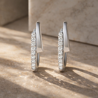 Hoops go beyond basic everyday styles through size, stone work, or distinctive shapes. Larger silhouettes and tapered profiles create presence while remaining wearable.